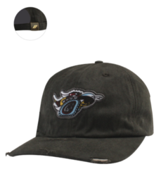 Dodge Scat Pack Logo Cap Item# 127JT You weren't the one to break in this Scat Pack cap, but no one needs to know! Specifications: · 100% pigment dyed cotton twill · Full jockey shape, unstructured · Buckle closure · Distressed markings on visor · Full color sublimated Scat Pack patch logo (front); etched Dodge rhombus (loop label on buckle closure) · One size fits most · Available in black